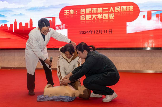 活动中,来自市二院的十余位医生详细讲解了急救知识,通过实际操作演示让师生更直观地理解了心肺复苏、人工呼吸以及海姆立克急救法等关键技能。急诊科医生王敬军鼓励学生们积极参与到实操练习中去,以便能够在关键时刻发挥作用。眼科专家王志敏利用生动形象的图片与案例,向大家介绍了长时间使用电子产品对眼睛可能造成的伤害,并提出了几点有效预防近视加深的方法建议。活动最后,合肥市第二人民医院的专业医疗人员还为到场的学生免费提供眼部健康检查服务。