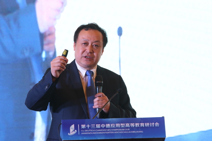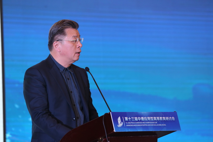 Nach der Eröffnungszeremonie teilten fünf Experten in der Grundsatzrede des Treffens ihre Gedanken zur anwendungsorientierten Hochschulbildung auf der Grundlage ihrer eigenen Forschungsbereiche mit. Ding Yongjian, Vizepräsident der Fachhochschule Magdeburg, stellte die „Perspektiven der chinesisch-deutschen Hochschulzusammenarbeit in der neuen Situation und die Rolle der deutschen Fachhochschulen“ vor. Er sagte, dass die internationalen Beziehungen in hohem Maße von der wirtschaftlichen Zusammenarbeit abhängen. China und Deutschland haben eine facettenreiche und feldübergreifende Zusammenarbeit im wirtschaftlichen Bereich, die auch eine solide Grundlage für die chinesisch-deutsche Zusammenarbeit im Hochschulbereich bildet. In Zukunft werden die Zusammenarbeit und der Austausch zwischen chinesischen und deutschen Universitäten fortgesetzt und vertieft, um die Entwicklung und den Fortschritt der chinesischen und deutschen Bildung sowie die Win-Win-Zusammenarbeit gemeinsam zu fördern.