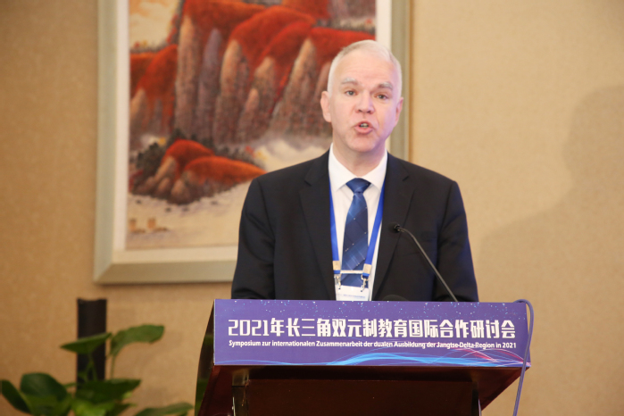 In seinem Bericht mit dem Titel Entwicklung - Kooperation - Innovation Vergangenheit, Gegenwart und Zukunft stellte Georg Stadler fest, dass Hochschulen und Universitäten ein zentraler Bestandteil der Bildung sind und die berufliche Bildung den Weg zur Innovation weist. Die chinesisch-deutsche Zusammenarbeit hat eine lange Geschichte. Er hofft, gute Kommunikation und Zusammenarbeit mit mehr Hochschulen und Universitäten zu etablieren, das duale Ausbildungsmodell zu nutzen, die Reform und Innovation von Ausbildungsprogrammen zu fördern, damit sich die umfassenden Kompetenzen und beruflichen Fähigkeiten der Studierenden weiter verbessern, so dass mehr Berufsschulen in China davon profitieren.