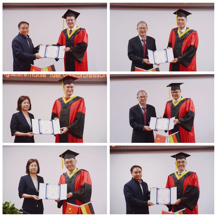 Xie Chao, Wang Qidong und Wu Chunmei überreichten Dr. Gabardi und den anderen fünf Gastprofessoren Zertifikate.