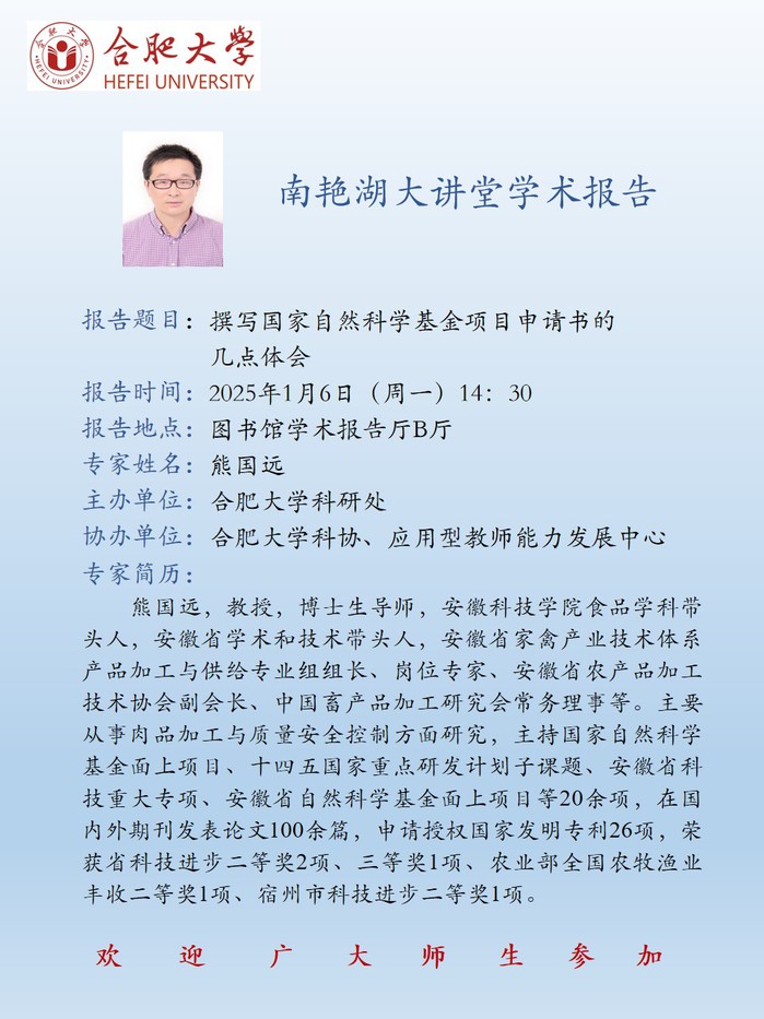 【南艳湖大讲堂】撰写国家自然科学基金项目申请书的几点体会