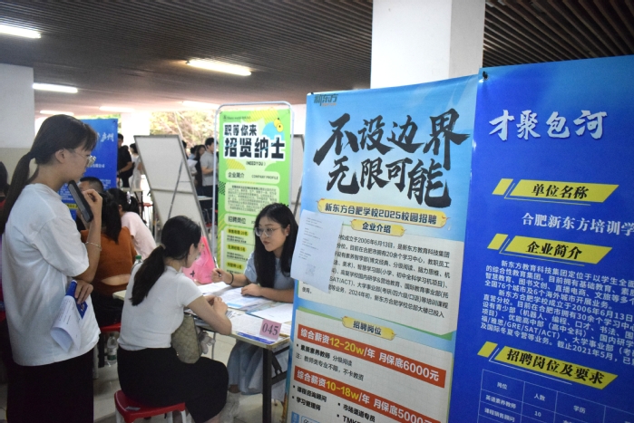此次招聘会是我校2025年秋季首场招聘会,招聘大厅现场气氛热烈,来自合肥经开区、新站高新区、安巢开发区、包河区、蜀山区的120家用人单位提供了覆盖学校全部专业的3700多个就业岗位,近4000名毕业生参加应聘。