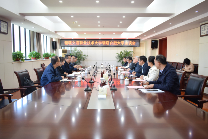 10月24日,新疆交通职业技术大学党委书记刘洪波带队来校调研交流,我校在行政楼九楼西会议室召开座谈会,党委书记邬平川出席并主持会议。
