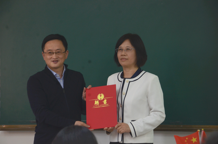 吴春梅为德国大陆马牌轮胎(中国)有限公司的四位出席嘉宾颁发合肥学院客座教授聘书,感谢四位客座教授为双元制大陆班专业乃至应用型高等教育改革所作出的贡献。她介绍了中德教育示范基地发展历程,表示“大陆班开创了人才培养新模式,是一个非常好的教育创新典范,也得到了双方领导的认同。希望同学们珍惜机会,了解大陆班的人才培养模式,努力学习,成长成才。”