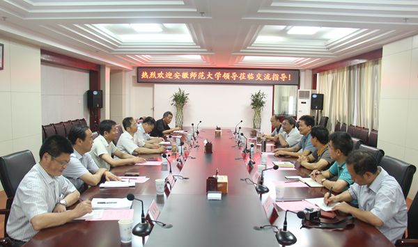6月19日,安徽师范大学副校长毕明福一行6人来我校进行交流访问。我校纪委书记洪家友、副校长张思扬在行政楼九楼东会议室热情接待了来宾。双方就基建维修、校园绿化、节能建设与管理等方面展开了讨论并交换了意见。