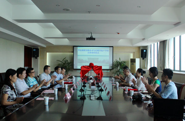 9月9日,华安期货有限公司总经理汤益民带领相关负责人来校参加产学研合作签约仪式。党委副书记、校长张文兵,党委副书记丁明等在行政楼九楼西会议室接待来宾并举行了签约仪式,为产学研合作基地揭牌。仪式由丁明主持。