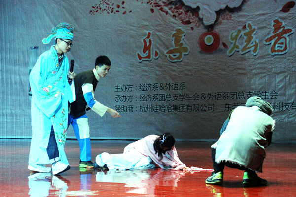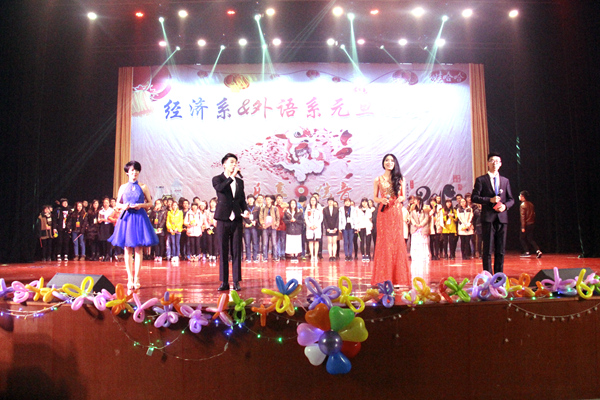 伴着电音强劲的节奏,踩着整齐的舞步,热情如火的街舞翻开晚会的扉页。4位青春靓丽的主持人一亮相便收获全场掌声。接着,经济系的同学表演了一出令人捧腹的小品《唐伯虎点秋香》,极具创意的剧情,演员们夸张的动作表情,一唱三叹的对白,引得台下观众爆发出一阵又一阵的大笑。柔美的英文、动感的德文、温情的日文、动听的韩文, 新颖独特的四国歌曲串烧点燃现场热情的气氛,口哨声、掌声接连不断。舞蹈《咏春》中,舞蹈演员们一袭清雅的旗袍装束,手中摇曳的纸扇伴随着升腾的烟雾,用轻盈的步伐、柔软的肢腰蹁跹起舞,将观众带入如梦如醉的画卷,博得满堂喝彩。当晚更是有几位教师的热情献艺。经济系老师邓秋实一首独唱《酒醉的探戈》活力四射,以及公共体育教学部老师刘梁玉献上的一场精彩绝伦的拉丁舞《默》,柔软的身姿、极具张力的舞蹈,收获了观众的热烈掌声。在聆听了诚挚温情的朗诵《爱在合院》后,晚会圆满结束。