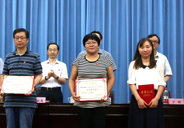 李秀娟老师(图中)在合肥学院庆祝建党95周年表彰大会获颁“优秀共产党员”