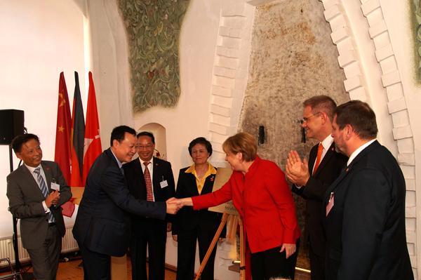 双方致辞后,默克尔与许琳等共同为孔子学院揭牌,这是默克尔本人及德国现任总理首次为孔子学院揭牌。