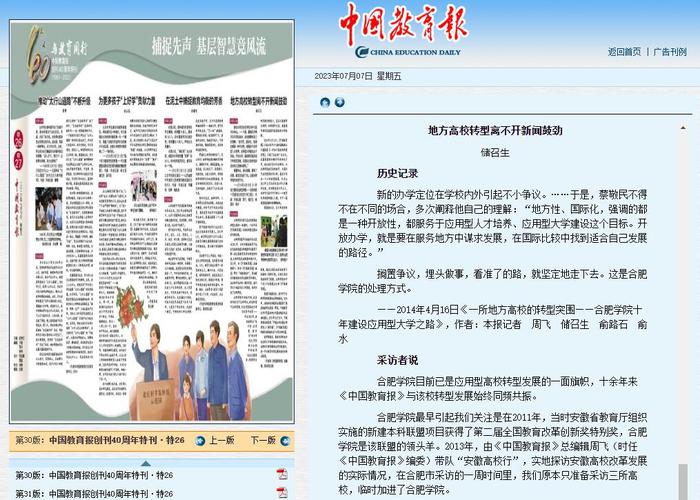 合肥学院目前已是应用型高校转型发展的一面旗帜,十余年来《中国教育报》与该校转型发展始终同频共振。