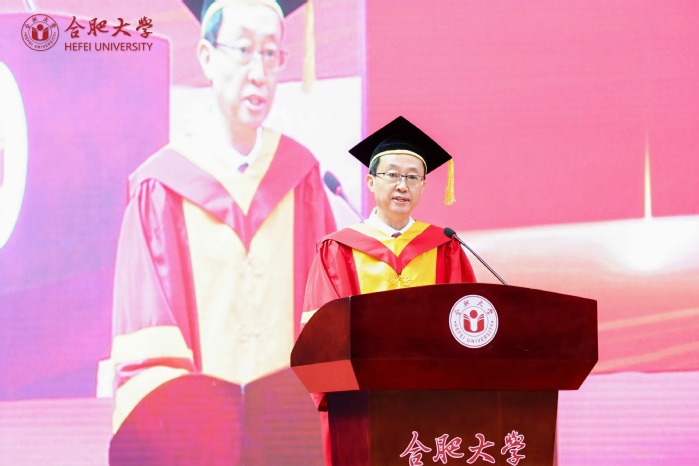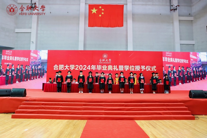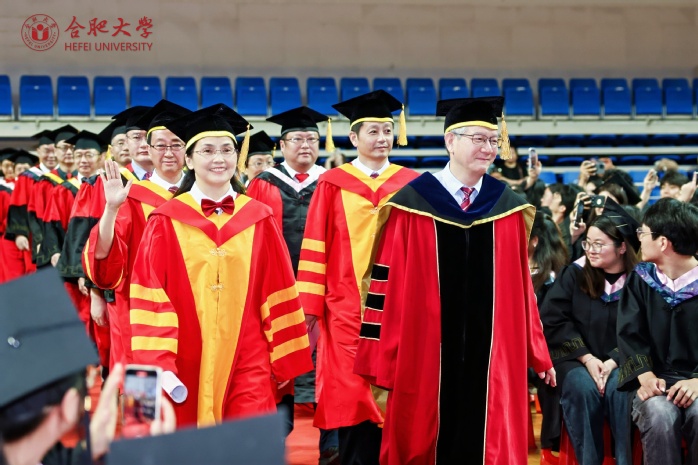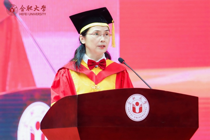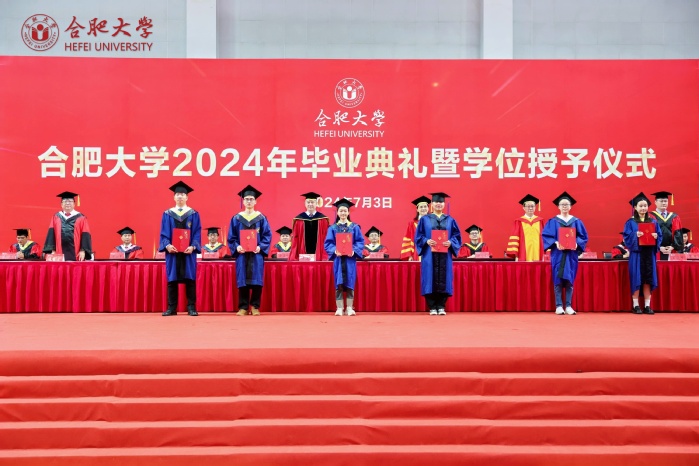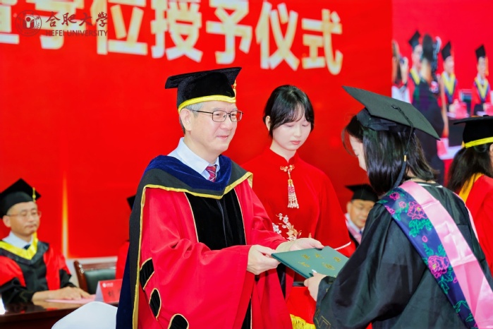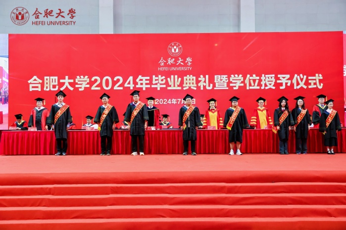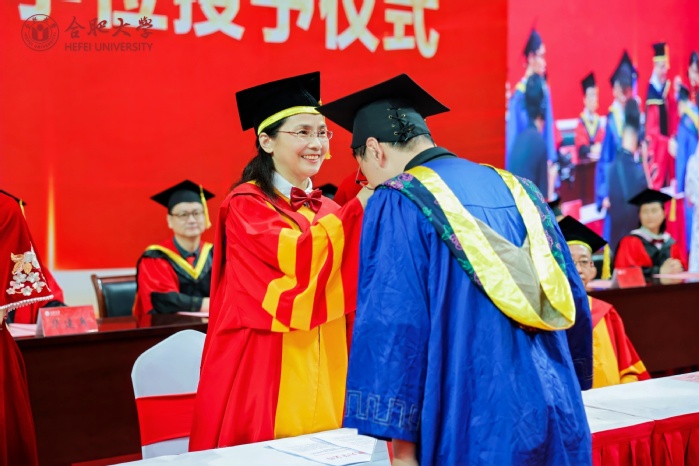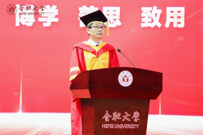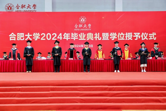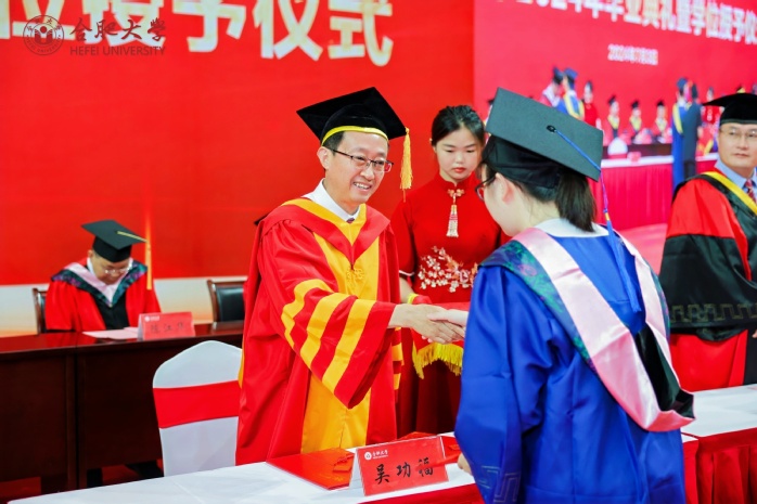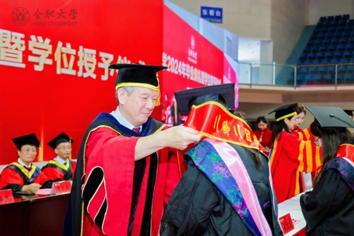 副校长、校学位评定委员会副主席陈秀宣读学位授予文件。校党委书记王其东、陈秀分别为本科毕业生代表、研究生毕业生代表、优秀留学生毕业生代表授学位、拨流苏。