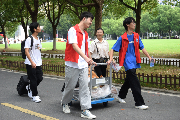 学校在火车站、高铁站设有迎新接站点,安排大巴车迎接新生前往校区。进入学校后,新生在有序引导下来到各自所在学院的展台和报到点办理手续,领取有关物品。后勤部门全方位做好食品卫生安全、校园环境绿化、医疗健康保障、公寓维修和入住服务、超市物资供应、安全隐患排查等工作,为新生们营造一个温馨有序的入学氛围。
