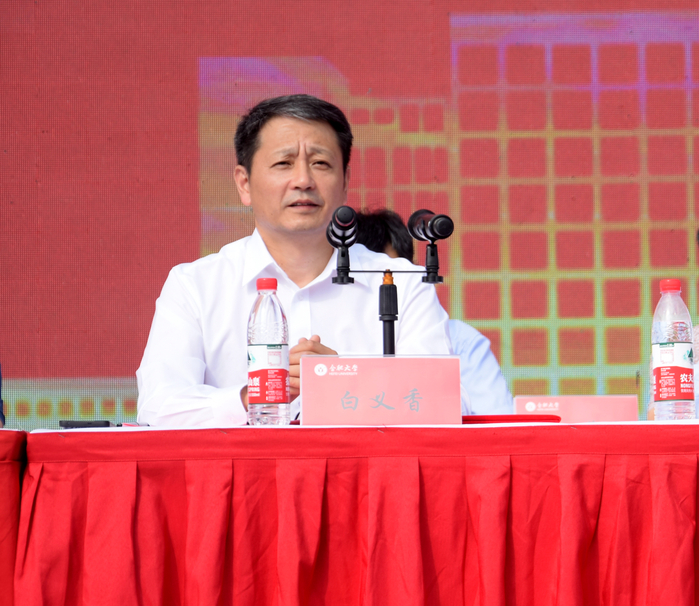 9月29日,2024级本科生开学典礼暨军事训练考核汇报于二期体育场举行。党委书记王其东、副校长白义香、纪委书记吴功福出席,各二级学院与职能部门党政主要负责人、2024级新生辅导员、2024级新生和全体参训教官共同参加活动。大会由白义香主持。