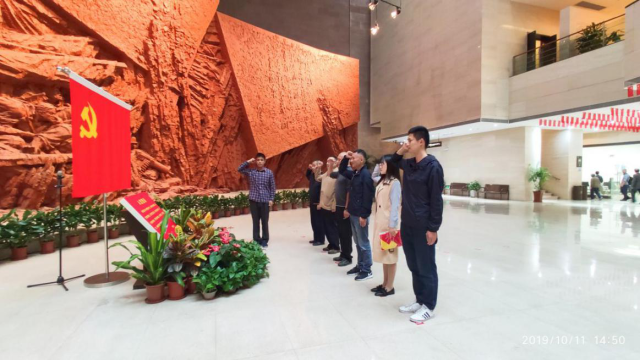 为庆祝中华人民共和国成立70周年,10月11日下午,人武部、保卫处党支部赴渡江战役纪念馆,缅怀中国共产党领导人民夺取胜利的光辉历史,重温入党誓词,接受革命传统教育。