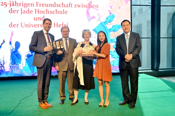 526日,德国下萨克森州经济、就业与能源部部长奥拉夫·赖斯(Olaf Lies)率下萨克森州经济代表团访问我校,为中德合作物流4.0”实验室揭牌,并参加合肥学院与德国雅德大学结好二十五周年庆典。安徽省外事办公室副主任张力芳、合肥市副市长吴春梅、安徽省教育厅外事处处长丁育红应邀出席。