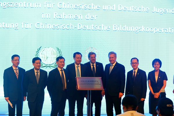 合肥学院党委书记蔡敬民为武尔夫主席颁发了合肥学院“荣誉教授”聘书,武尔夫主席为中德教育合作示范基地六大平台之一的“中德青年创业孵化中心”揭牌,全球中小企业联盟秘书长曹方、中国人民对外友好协会亚欧部部长沈昕、安徽省教育厅厅长李和平、安徽省人民政府外事办公室副主任张力芳等陪同揭牌。他们共同见证了蔡敬民与全球中小企业联盟秘书长曹方先签署双方战略合作协议,同时也见证了全球中小企业联盟秘书长曹方与全球中小企业联盟德国、瑞士、奥地利区执行主席迈克尔·皮茨签署全球中小企业联盟欧洲办公室协议。