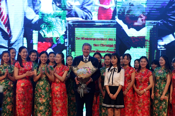 武尔夫主席在合肥学院发表主旨演讲。他深情回忆起第一次访华在学院时种下友谊树、2008年再次访华为友谊树浇水的情景,这也是他种下的第一颗友谊树。他回忆,第一次访问学校时,年轻人态度特别的积极,特别的热情,中国的青年想创造未来,对未来有非常多的期待,给他留下了非常深刻的印象。他在演讲中回顾了德国下萨克森州和安徽的合作历史,双方在农业、食品加工、机械制造和工业设计等领域开展的全方位合作,为中德交流打下坚实的基础。他引用李克强总理的比喻说,中德合作要像吃螃蟹那样,用智慧、技术和耐心把“螃蟹”吃干净,不能吃一口就算了。因此,德国和中国的交流还有很多领域可以携手,可以互相借鉴的地方非常之多,双方可以在新的丝绸之路上加强交流与合作,开创辉煌的未来。