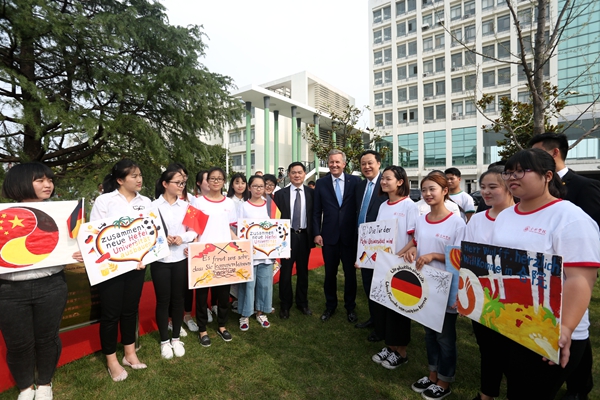 在互动环节,武尔夫认真回答学生提出的问题,青年学生被武尔夫的幽默风趣深深吸引。针对全球化的机遇与挑战,武尔夫认为教育至关重要,要提高全民素质,做好思想上的准备,回馈社会并帮助的更多人。他风趣地指出中德学生的区别,表示接受双元制高等教育大陆班学生对促进中小企业的发展意义非凡,学生要将理论与实践相结合,明确目标、提高能力。