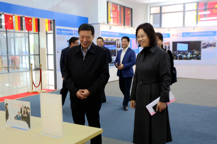 会后,陈昌虎一行在吴春梅的陪同下参观了中德共建合肥学院成果展。