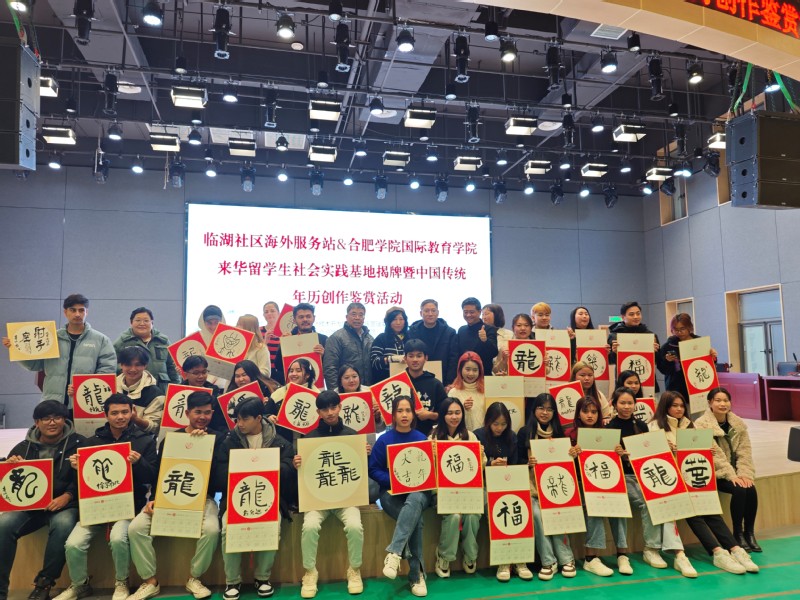12月13日,合肥学院国际教育学院与临湖社区共建的来华留学生社会实践基地揭牌仪式暨中国传统年历创作鉴赏活动在临湖社区党群服务中心举行。