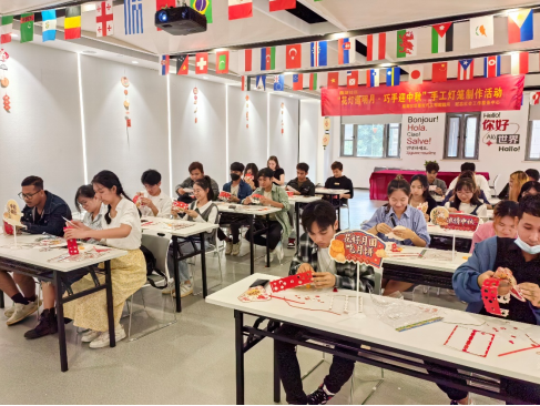 活动分为两部分:中秋文艺汇演和中秋传统文化活动体验。文艺汇演的节目引人入胜,国际学生和社区的叔叔、阿姨们载歌载舞,在欢声笑语中,大家兴致勃勃地交流,场面十分热烈,尤其是传统的黄梅戏表演更是将气氛推向了高潮。传统文化体验包括做传统灯笼以及亲手体验月饼制作两个流程,做灯笼的过程中,每个人都专心地学习着老师的做法,然后一步步地完善自己的灯笼,当最后自己的手上出现了一盏流光溢彩的中国传统灯笼时,喜悦之情溢于言表。在月饼制作环节,大家都其乐融融,参与其中,先将面饼摊开仔细地裹上自己喜欢的馅料,然后放进模具里压制,当一个个像模像样的传统月饼出现时,学生们的脸上露出了灿烂的笑容。