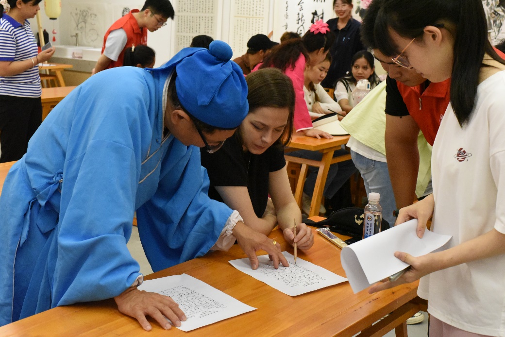 此次黄梅戏文化体验课程,国际学生们了解了黄梅戏起源发展以及流派门类,学习了黄梅戏经典曲目《天仙配》(树上的鸟儿成双对),对歌词进行逐字逐句学习,专注理解,虚心向老师请教。