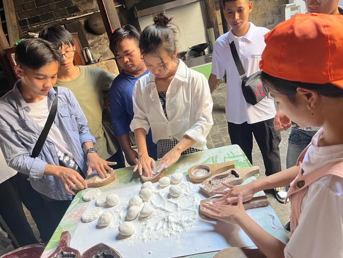 行走在依山傍水的宏村古村落中,驻足在白墙黑瓦的徽派古建筑下,留学生们用实践进一步理解课本中的中华文化内涵。在千年历史、规模宏大的古村落——南屏,他们由师傅带领,在农户家中学习打制一种叫作“食桃“的特色小吃,大家都兴致勃勃,争相体验。活动最后一天,留学生们成功登上黄山第二高峰光明顶,在黄山的层峦叠嶂、云雾缭绕之中真切感受到了它的雄壮俊秀之美。