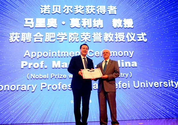 On March 2nd, 2018, Professor Mario J. Molina working at the Massachusetts Institute of Technology, Nobel Prize winner in chemistry (1995), gives a lecture on international air pollution and health at Hefei University.