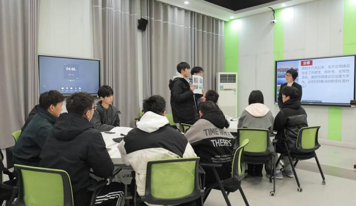 为了把艰深的理论讲彻底、讲生动,进一步发挥党的创新理论固本培元、凝心铸魂的作用,胡彩林深入系统地进行理论研习、学情分析、策略设计、实施考评、反思整改,努力增强思政课的针对性和吸引力。课前五分钟,胡彩林总会提前到达教室,完成师生之间的互动“小游戏”。学生围绕国内外时事热点进行演讲,再由老师点评,当学生的观点比较片面时,她会结合学生的理解进行有理有据的引导。师生协同打造了习言习语分享、时事新闻短评、大学生讲思政课、主播说联播、今天我来说等一批充满趣味的研讨教学品牌。