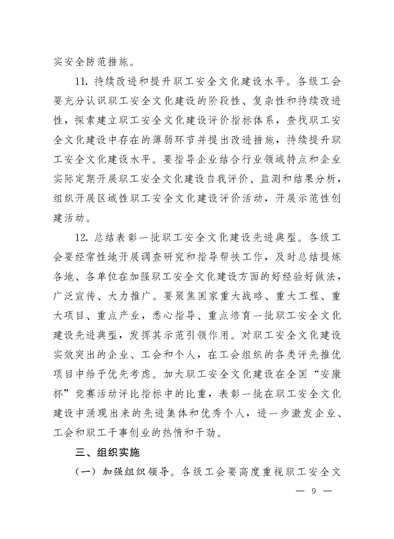 中华全国总工会办公厅印发《关于加强职工安全文化建设的指导意见》的通知