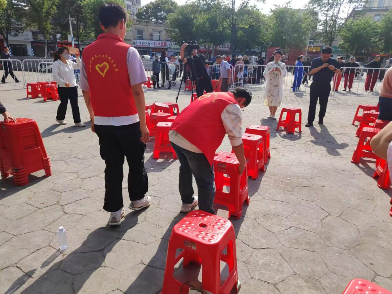 活动当天,志愿者们一抵达莲花广场,便迅速与现场工作人员会合,马不停蹄地投入到文艺演出现场的布置工作中。他们齐心协力搬运道具、摆放座椅、调试设备,每一个环节都认真细致,为演出的顺利进行做好充分准备。在演出活动期间,志愿者们又肩负起场地秩序维护及管理的重任。他们时刻保持专注,在人群中来回巡查,及时发现并解决各类问题,确保现场秩序井然。无论是为观众指引座位,还是帮助老人、小孩解决困难,志愿者们都耐心周到,赢得了现场群众的一致好评。