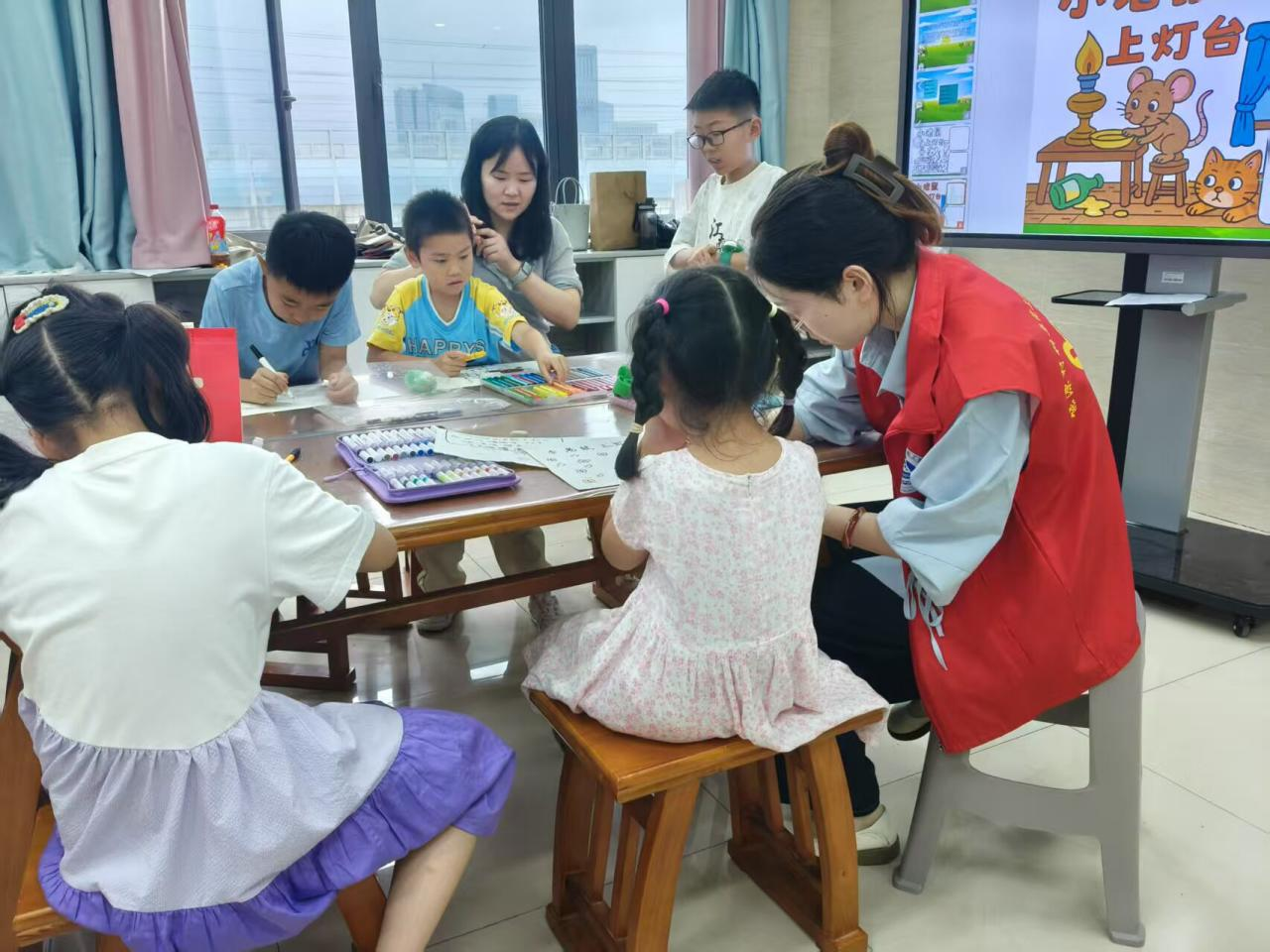 在此次活动中,志愿者们承担了重要的辅导工作,协助书法老师和美术老师开展教学活动。他们耐心地为孩子们讲解书法的笔画结构和运笔技巧,孩子们引导感受汉字的魅力。在美术课堂上,志愿者们帮助孩子们发挥想象力,用画笔描绘出心中的美好世界。通过志愿者们的悉心辅导,孩子们的学习热情被充分激发,课堂氛围活跃而欢快。