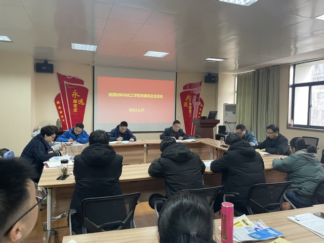 2023年2月21日下午,能源材料与化工学院党委在34栋材化学院学术中心召开了2022年度专题民主生活会。学校党委副书记刘建中和党委组织部副部长杨红到会指导。学院领导班子成员、党委委员参加会议,院长胡坤宏、科级干部和教工支部书记列席会议,会议由院党委书记刘沛平主持。