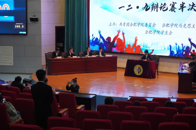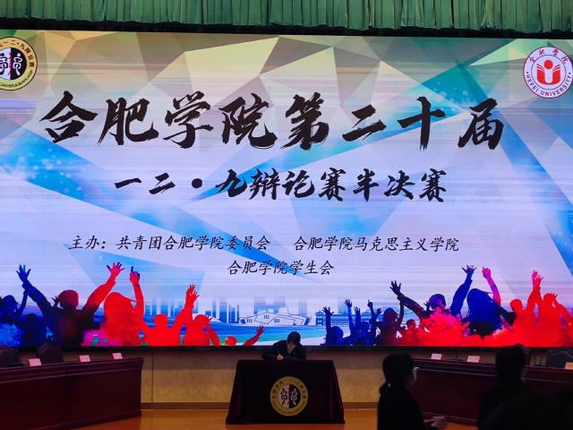 为了丰富学生课余生活,增强学生逻辑思维和语言表达能力,提高学生的辩论水平,由校团委主办的合肥学院第二十届一二·九辩论赛半决赛于11月29日晚7:30在图书馆报告厅A举行。担任此次比赛的评委有马克思主义学院李继友老师、黄莹莹老师、魏亚老师。