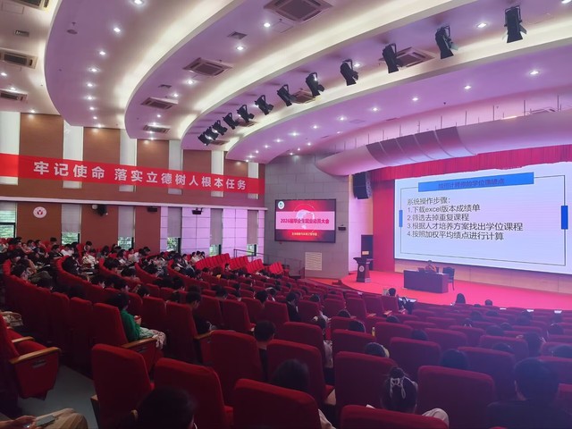会上,学院围绕就业政策、毕业相关要求、“二课”制度等关键内容展开多维度宣讲。在就业政策板块,主讲人郑国平以“热血铸军魂”为主题,激励学子们在国防事业中绽放青春,她详细介绍了参军入伍的相关流程以及政策,用往届毕业生的相关案例引导学生积极参军入伍,投身军旅报国。毕业相关要求环节,学院明确通报了合格公选课、艺术课的修读情况,提醒未达标学生及时补修,同时针对学位绩点计算,现场演示了从成绩单下载到课程筛选的全流程操作,让学子们对自身学业情况一目了然;学院同时对“二课”成绩单制度进行详细解读,介绍了学生毕业应当完成的第二课堂活动,为毕业生综合素质呈现提供了清晰指引。