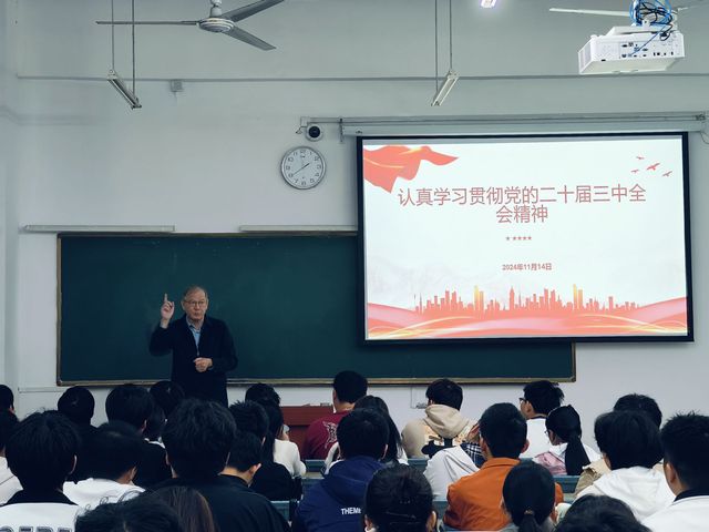 11月14日下午,校党委书记王其东以“认真学习贯彻党的二十届三中全会精神”为题,分别为新能源、能源化学工程、工业设计、机械自动化(双元制)等专业2024级新生讲授《形势与政策》课,受到同学们的热烈欢迎。