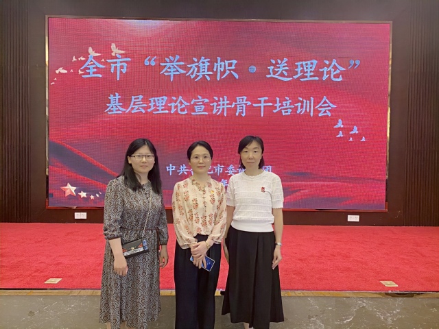 为深入学习贯彻习近平新时代中国特色社会主义思想和党的二十大精神,提升基层理论宣讲员宣讲能力,2023年7月6日上午,合肥市委讲师团组织召开全市“举旗帜·送理论”基层理论宣讲骨干培训会。马克思主义学院副院长苏冰、黄莹莹和宣传部万昭莹老师参加。