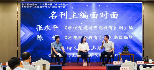 当日下午,大会进入名刊主编面对面交流环节。《学校党建与思想教育》副主编张永平和《思想理论教育导刊》高级编辑陈娟应邀与现场的专家学者们进行面对面交流。主编们介绍各自期刊的征稿范围、热点研究问题、研究范式和写作模式等,与会人员就论文的写作和发表等方面的问题与主编进行互动交流。合肥学院马克思主义学院院长陈志超主持交流会。
