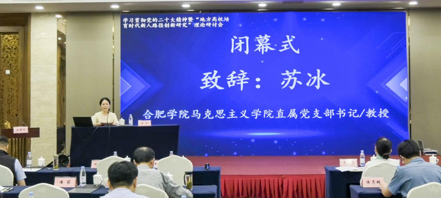 闭幕式上,合肥学院马克思主义学院副院长、马克思主义学院直属党支部书记苏冰在总结性发言中指出,本次会议理论研讨层次高端、专业,学术交流氛围务实、融洽,研讨交流内容优质、多元,专家学者围绕主题从不同的视角贡献思想观点和理论智慧,展现了思想张力,促进了沟通对话。