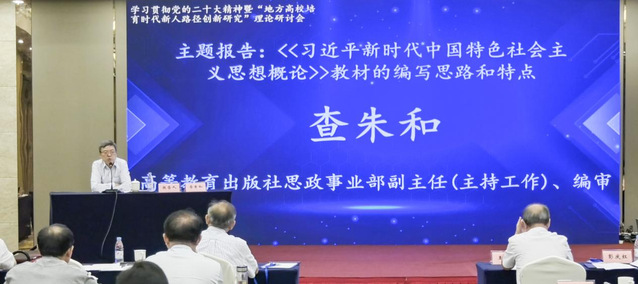 在开幕式后的主题报告阶段,与会代表围绕理论研讨会主题,展开深入探讨。北京师范大学王树荫教授作题为《新时代新征程青年工作的理论指引和行动指南》报告,华中师范大学万美容教授作题为《培养党和国家事业迫切需要的优秀人才》报告,高等教育出版社查朱和编审作题为《〈习近平新时代中国特色社会主义思想概论〉教材的编写思路和特点》报告,韩修良秘书长作题为《理论热点与教育变革》报告,池州学院党委书记孙晓峰作题为《培育时代新人与提升高校思政课改革创新度》报告。安徽大学马克思主义学院院长吴学琴和安徽农业大学马克思主义学院党委书记孙超分别主持报告会。