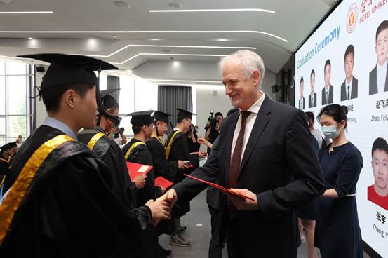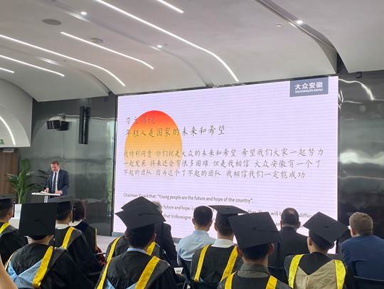 2022年6月16日上午,我校和大众集团合作培养的首批“种子工程师”顺利毕业。大众中国执行副总裁傅勤彦先生、校长吴春梅教授、大众安徽首席执行官葛皖镝博士、首席制造官施耐德先生、首席技术官吕尔曼博士、首席人力资源官邵剑先生以及我校相关职能部门和学院负责人出席在大众安徽举行的毕业典礼。