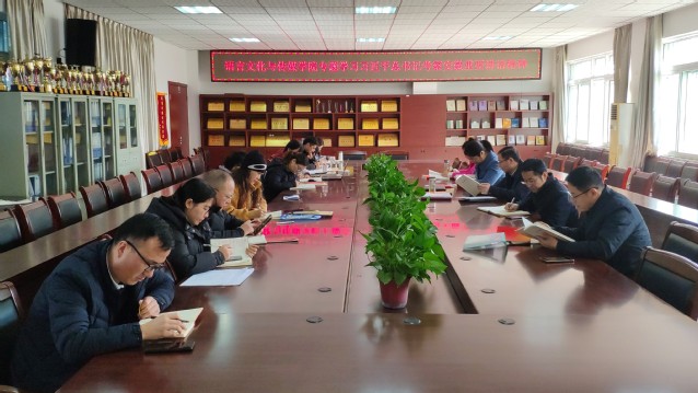1126日,语言文化与传媒学院在学院大会议室召开党委理论学习中心组学习会,专题学习研讨习近平总书记考察安徽重要讲话精神,学院领导班子成员、党委委员、纪委委员、科级干部及各党支部书记、系(中心)主任参加,会议由院党委书记储昭辉主持。