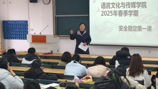 3月4日中午12:10,语言文化与传媒学院安全教育第一课在一区善思楼C座101教室顺利举行。本次活动由语言文化与传媒学院党委副书记张爱萍主持,语言文化与传媒学院团委负责老师窦思佳出席。