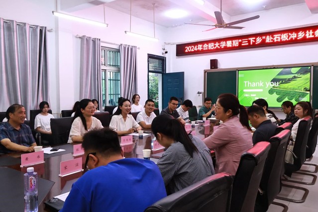 会议伊始,由学生代表张金涵对语言文化与传媒学院暑期“三下乡”社会实践团队各部门工作内容及成果进行展示汇报。随后,领导们就高校与地方政府之间在大学生社会实践活动方面的合作情况进行交流探讨。领导们建议建设常态高效的合作机制,这种合作模式包括提供志愿服务平台,涵盖了高校组织“三下乡”等活动,帮助大学生增强实践能力和就业竞争力。强调了实践活动在促进学生学习和成长,促进乡村建设、增强青年社会责任感及推动人才回乡等方面的重要作用。此外,地方通过引入大学生参与支教等活动,不仅为农村学生的教育提供助力,也为大学生提供了宝贵的社会实践经验。最后双方交流讨论,提出建立长期合作关系、共同培养人才的构想。