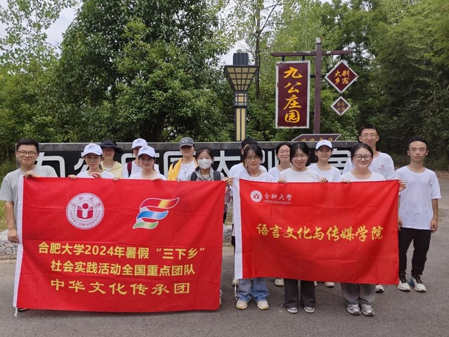 202479日上午十点,语言文化与传媒学院“文脉传承,助农兴村”暑期“三下乡”社会实践团队队员们徒步来到位于安徽省乡村旅游特色美食村石板冲乡九公冲村的九公庄园。