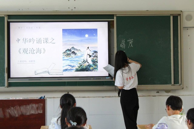 此次《观沧海》进阶吟诵教学,是团队推动传统文化教育“从入门到深耕”的重要实践。通过分层递进的教学设计,既夯实了学生的吟诵基础,又深化了他们对古典诗词的审美感知与文化认同。团队成员将持续为乡村教育注入文化活力,助力学生在传统文化的滋养中厚植精神根基。