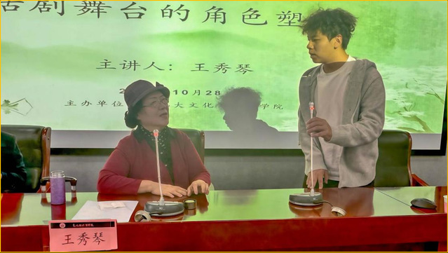 同学们受益匪浅,互动环节纷纷上台向王秀琴老师提问,王老师耐心细致地一一解答,为他们在即将开始话剧节展演提供帮助。