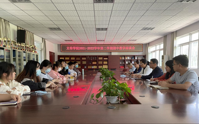 为更好地贯彻疫情防控各项工作要求,确保线上线下教学同质等效,更好地了解学生的学习生活情况,倾听学生对于学院各项工作的意见与建议,语言文化与传媒学院中文系于2022年5月4日中午在一区善思楼C座二楼会议室召开了2021-2022学年第二学期期中教学座谈会。语言文化与传媒学院党委副书记张爱萍、副院长殷明明、中文系负责人洪婧、学工办主任顾盼盼,教学办副主任章衡、学院团委负责人刘政和中文系各班级学生代表共同参会。