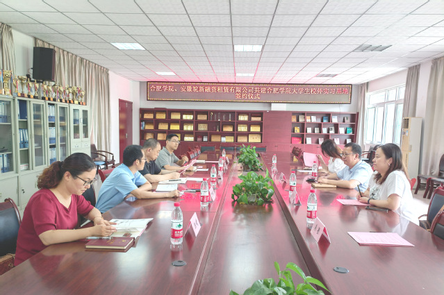 为提高人才培养质量,以更大合力促进产教融合、理实融合、学做融合,合肥学院语言文化与传媒学院携手安徽皖新融资租赁有限公司共建大学生校外实习基地,2022年7月8日双方在语言文化与传媒学院会议室举行签约暨揭牌仪式。语言文化与传媒学院党委书记董承军、院长丁增武、安徽皖新融资租赁有限公司董事副总经理张鲁徽出席并致辞,语言文化与传媒学院副院长殷明明、中文系负责人洪婧、皖新融资租赁有限公司人事行政部经理杨文文等参加了本次活动。