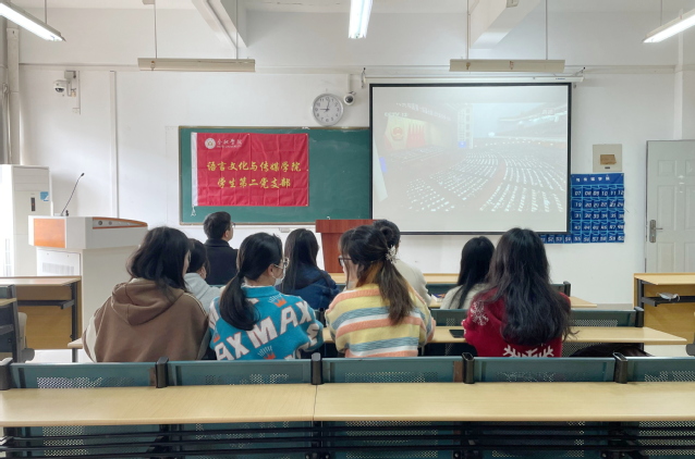 3月5日上午,语言文化与传媒学院学生第二党支部在5栋3楼教室集中收听收看十四届全国人大一次会议开幕会直播,现场聆听国务院总理李克强作政府工作报告。